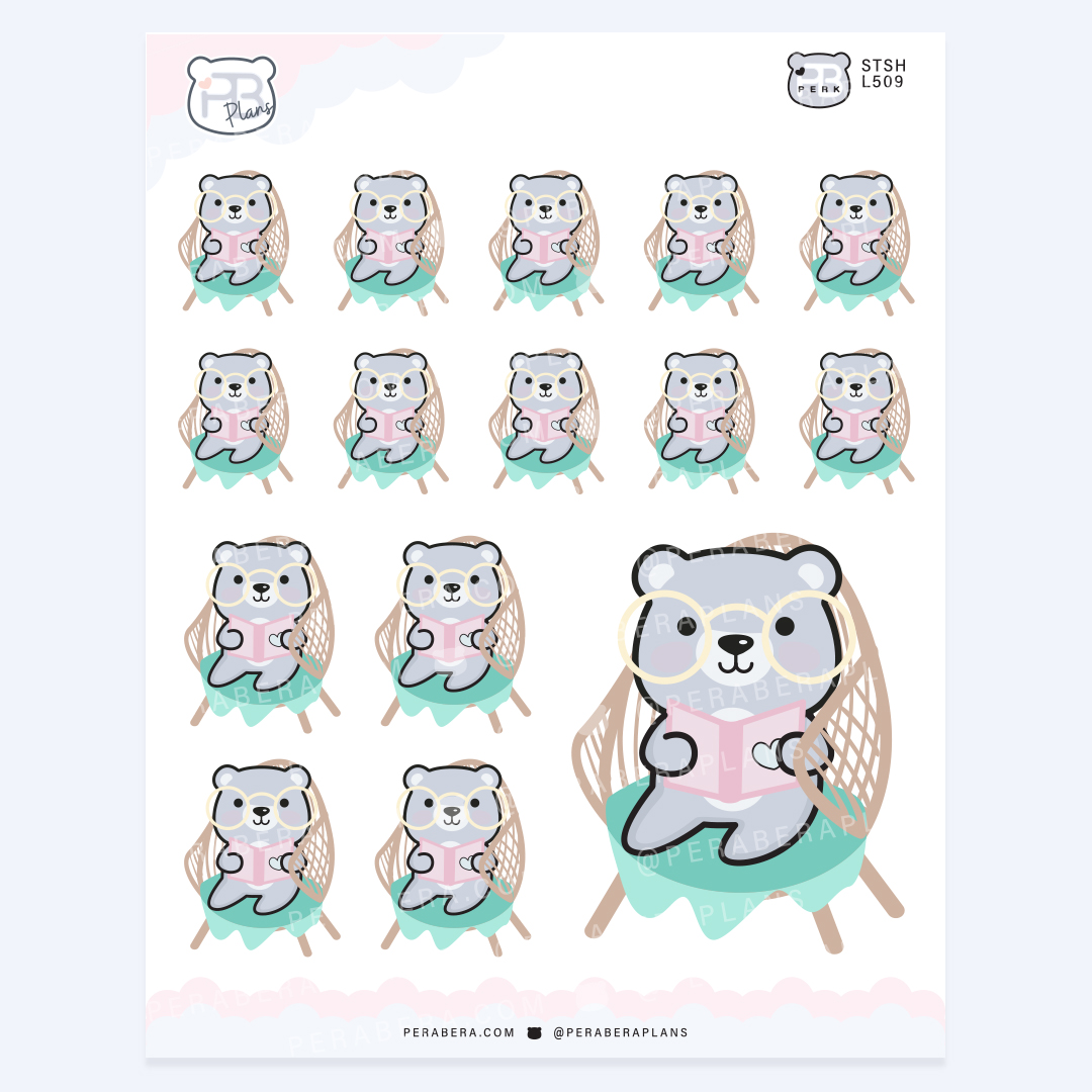 Cute Relaxing Reading Book Bear Sticker Sheet – Planner Journal Stickers