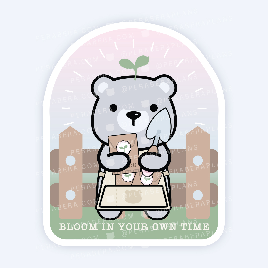 Die Cut: Single Large Stickers – Cute Cottagecore Garden Bear