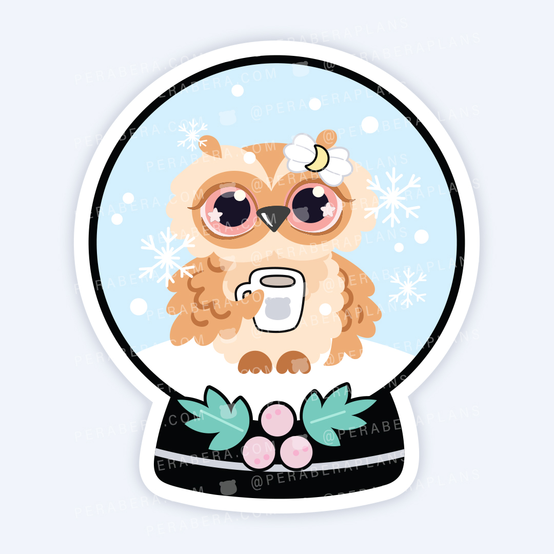 Holiday Owl Nyxi Snow Globe – Festive Holiday Planner Stickers