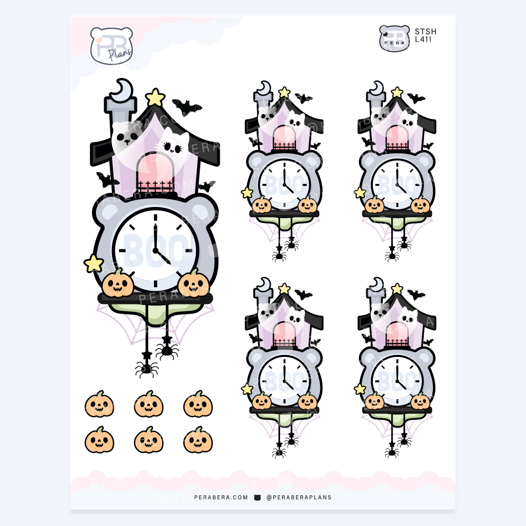Haunted House Tick Tock Clock Planner Stickers – Spooky Halloween Deco Sheet