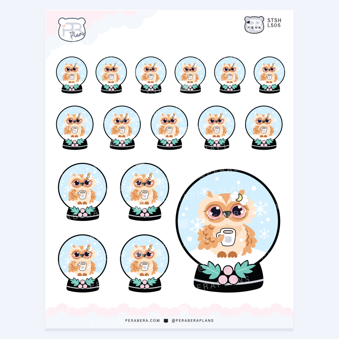 Holiday Owl Nyxi Snow Globe – Festive Holiday Planner Stickers