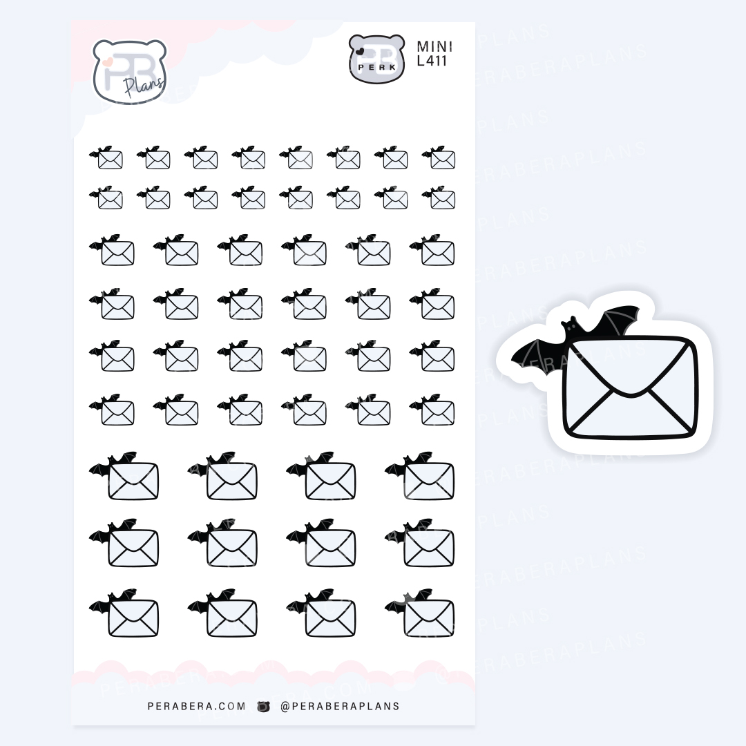 Add some spooky cute charm to your planner with these bat mail stickers! Great for happy mail tracking, Halloween planning, and decorating journals. Each sheet is about the size of a business card and fits perfectly into your planner pockets, featuring single mini stickers ideal for planning and journaling.