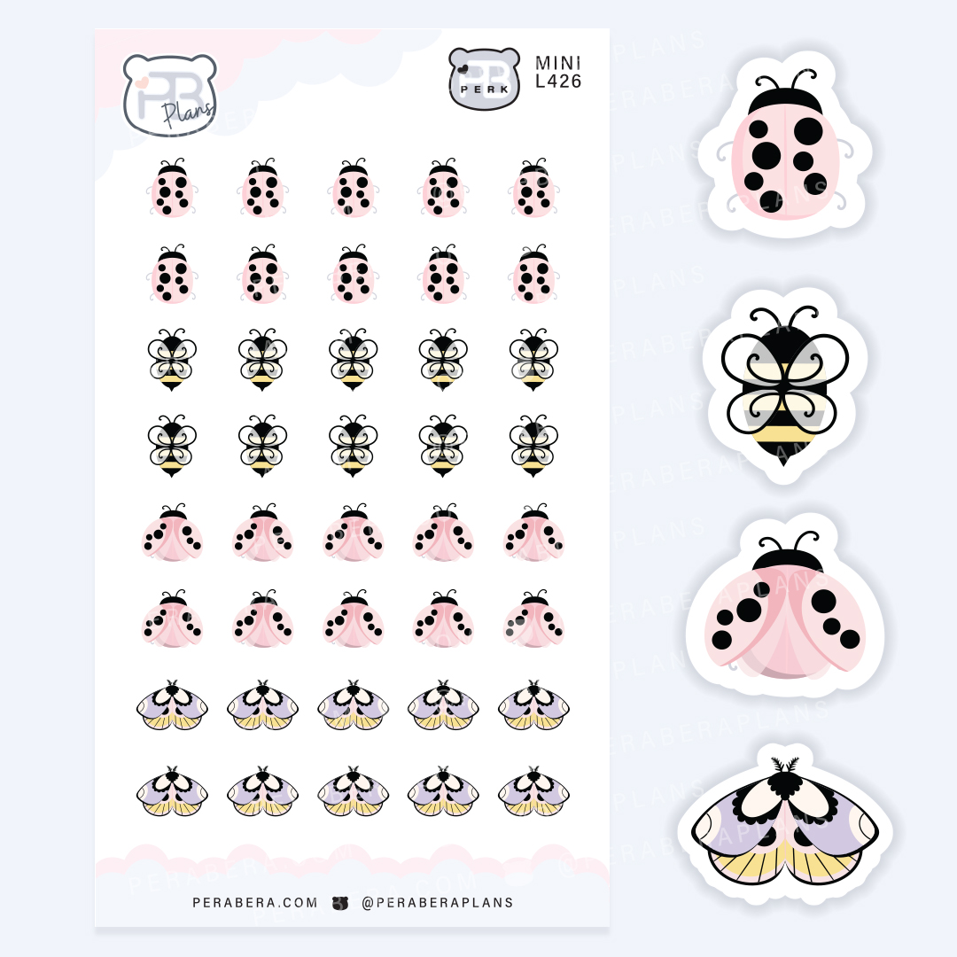 These mini bug planner stickers are the perfect mix of cute and cozy! Ladybugs, moths, bees, and cottagecore nature vibes to decorate your planner, bullet journal, or calendar. Each sheet is about the size of a business card and fits perfectly into your planner pockets, featuring single mini stickers ideal for planning and journaling.