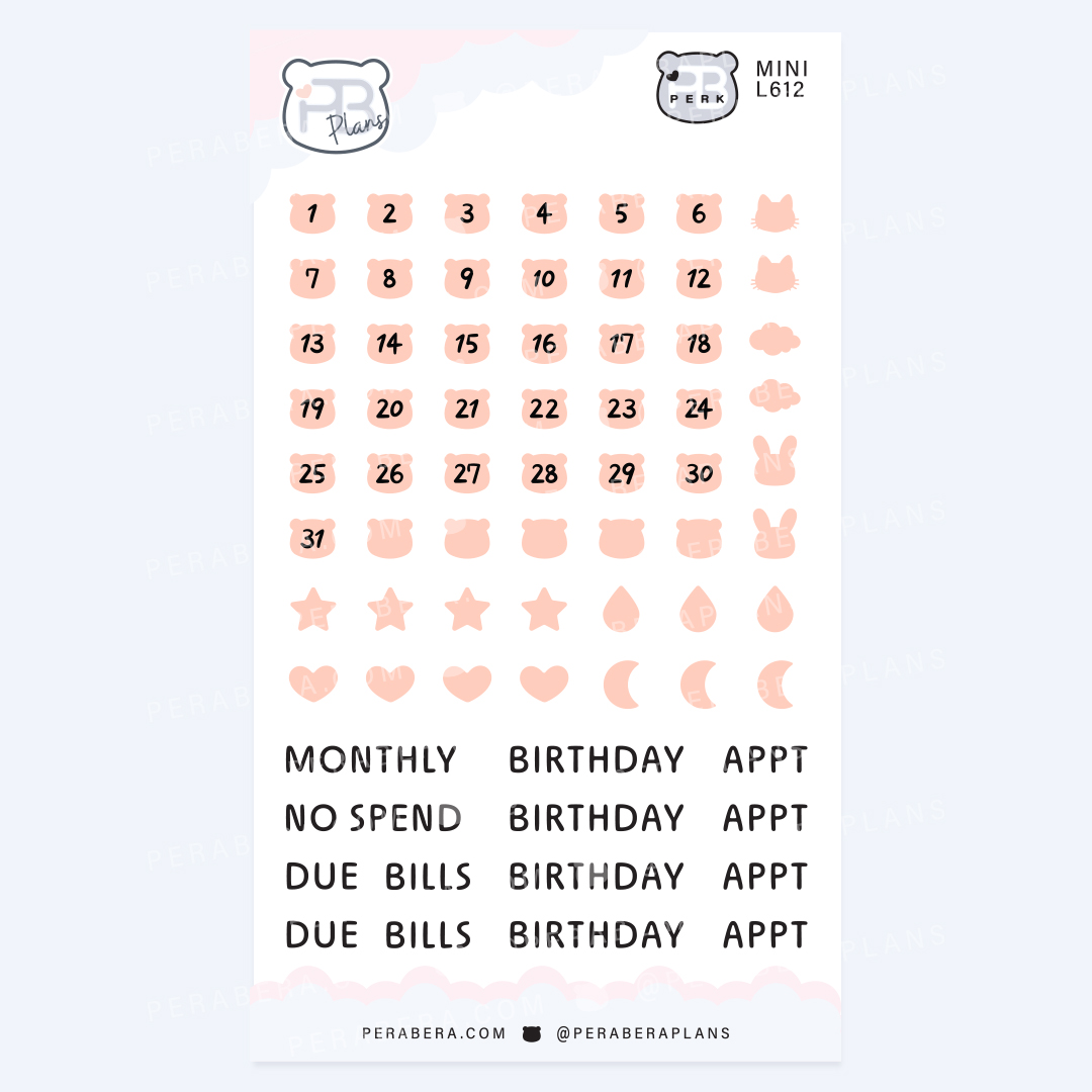 Brighten up your planner’s monthly section with these adorable tiny bear shape date number stickers! These cute MINI functional planner stickers help you stay organized while adding personality to your pages. Perfect for marking just about anything in your planner, journal, work, or school. High-quality, easy-to-stick stickers add a fun and functional touch to your planning routine. Each sheet is about the size of a business card and fits perfectly into your planner pockets, featuring single mini stickers ideal for planning and journaling.