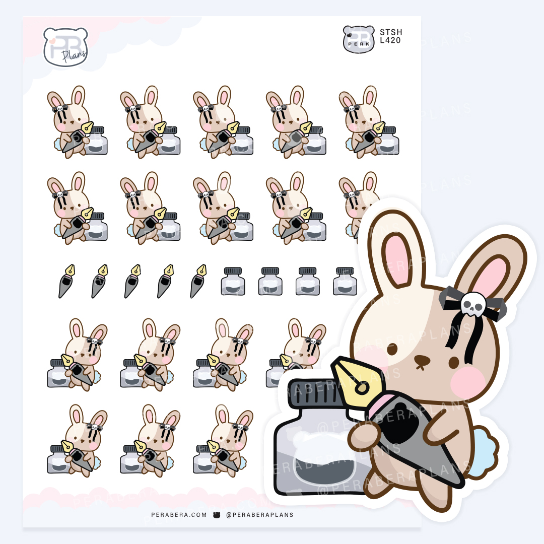 Spooky Emo BunBun with Skull Bow & Fountain Pen – Spooky Halloween Deco Sheet